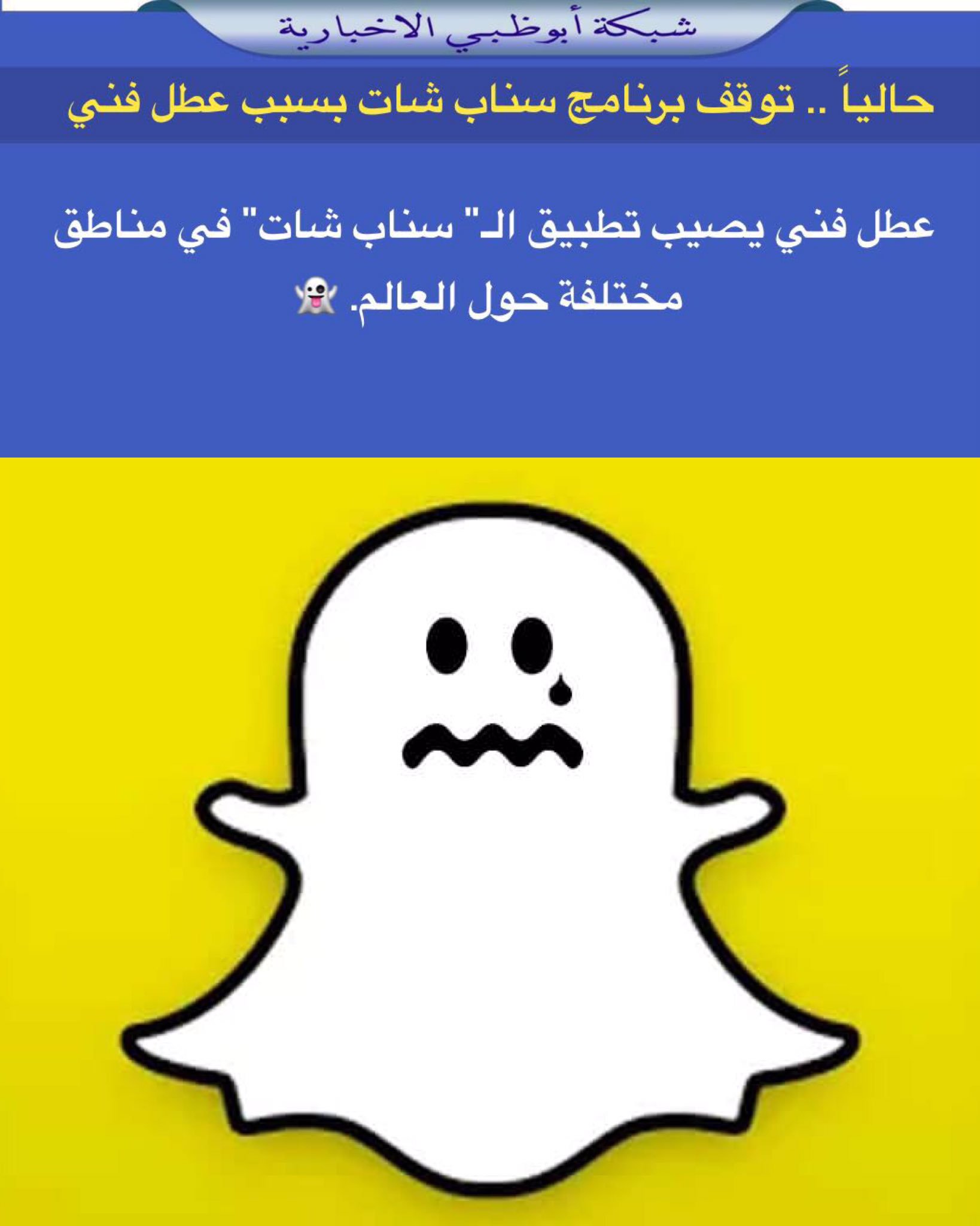 إذا كنت غير قادرا على فتح تطبيق سناب شات ، فأنت لست الوحيد، فقد شكا الآلاف من المستخدمين حول العالم من عطل في التطبيق. ويشير موقع down detector المعني بأخبار. 17 hours ago · عطل فني يصيب تطبيق سناب شات يذكر أن هذه ليست المرة الأولى التي يتعرض فيها تطبيق سناب شات للعطل، حيث اشتكى مستخدمو التطبيق في الشهر الماضي من عطل فني، حيث لا يمكنهم إرسال أو استقبال الرسائل، وطالب مستخدمو موقع. لا تحذف التطبيق وقال الخبير التقني. 7 hours ago · عطل ضخم يصيب سناب شات.